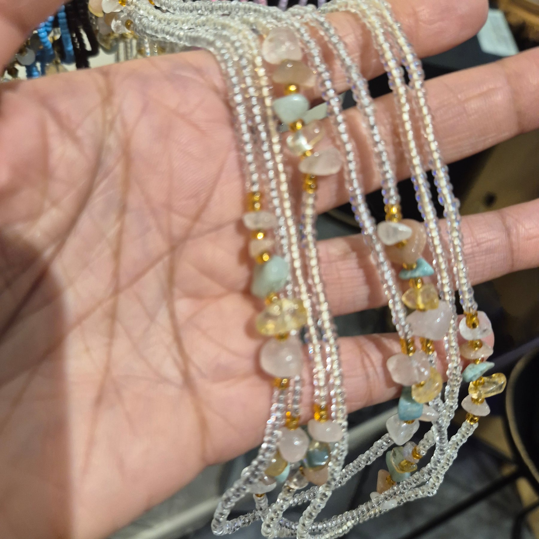 Made with real stone chips this beautiful waist bead carries the properties of a variety of stones. 💛