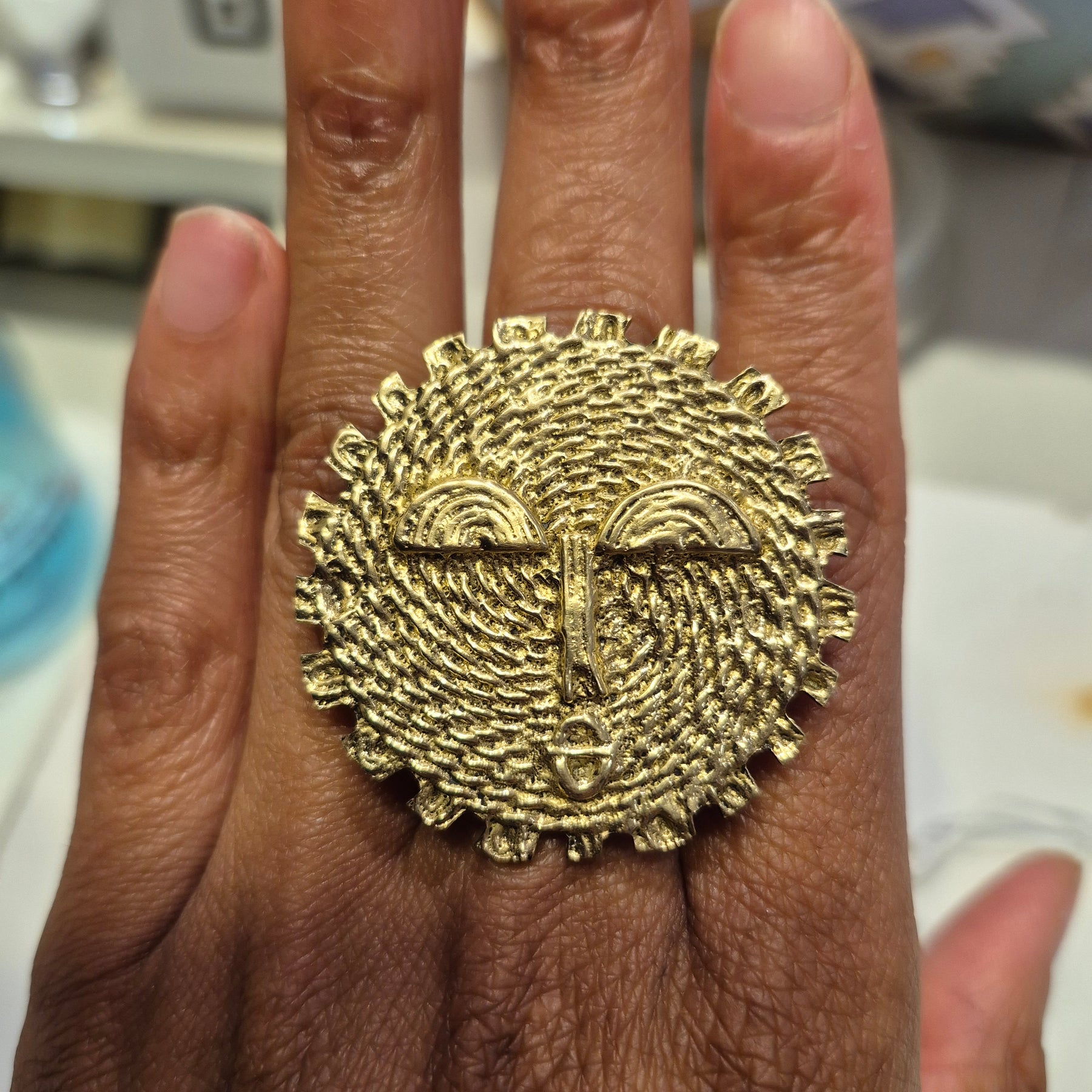 Made in Kenya, out of 100% Kenyan brass, this gorgeous statement ring was sourced directly by our creative director Lecretia and her vendor connects in Kenya. We are proud to stimulate the economy both here in the states and Africa through textiles, accessories and fashion that connect you to your inner royalty.