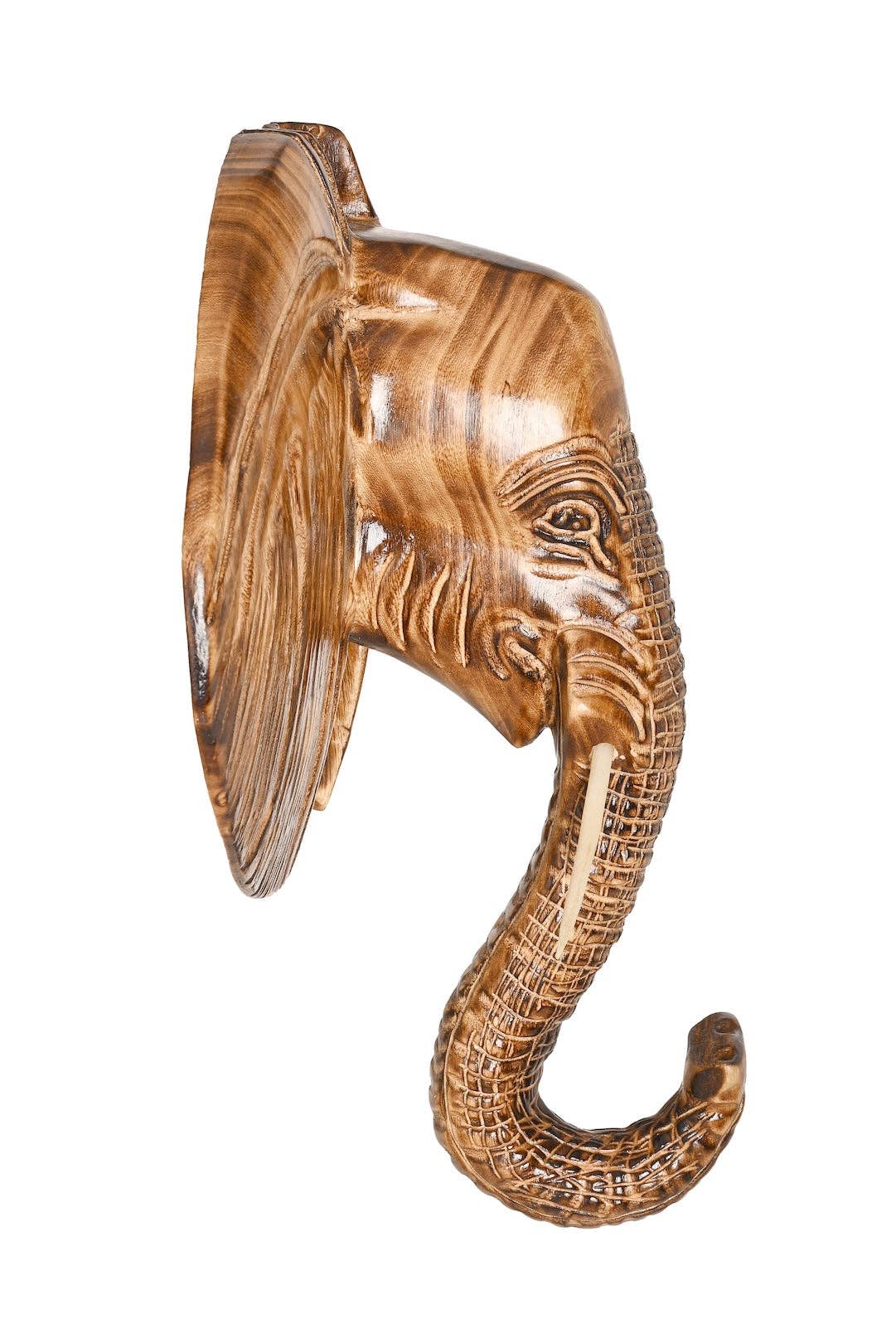 This rustic elephant wall mask is hand carved from jacaranda wood and cow bone by carvers in Nairobi, Kenya.