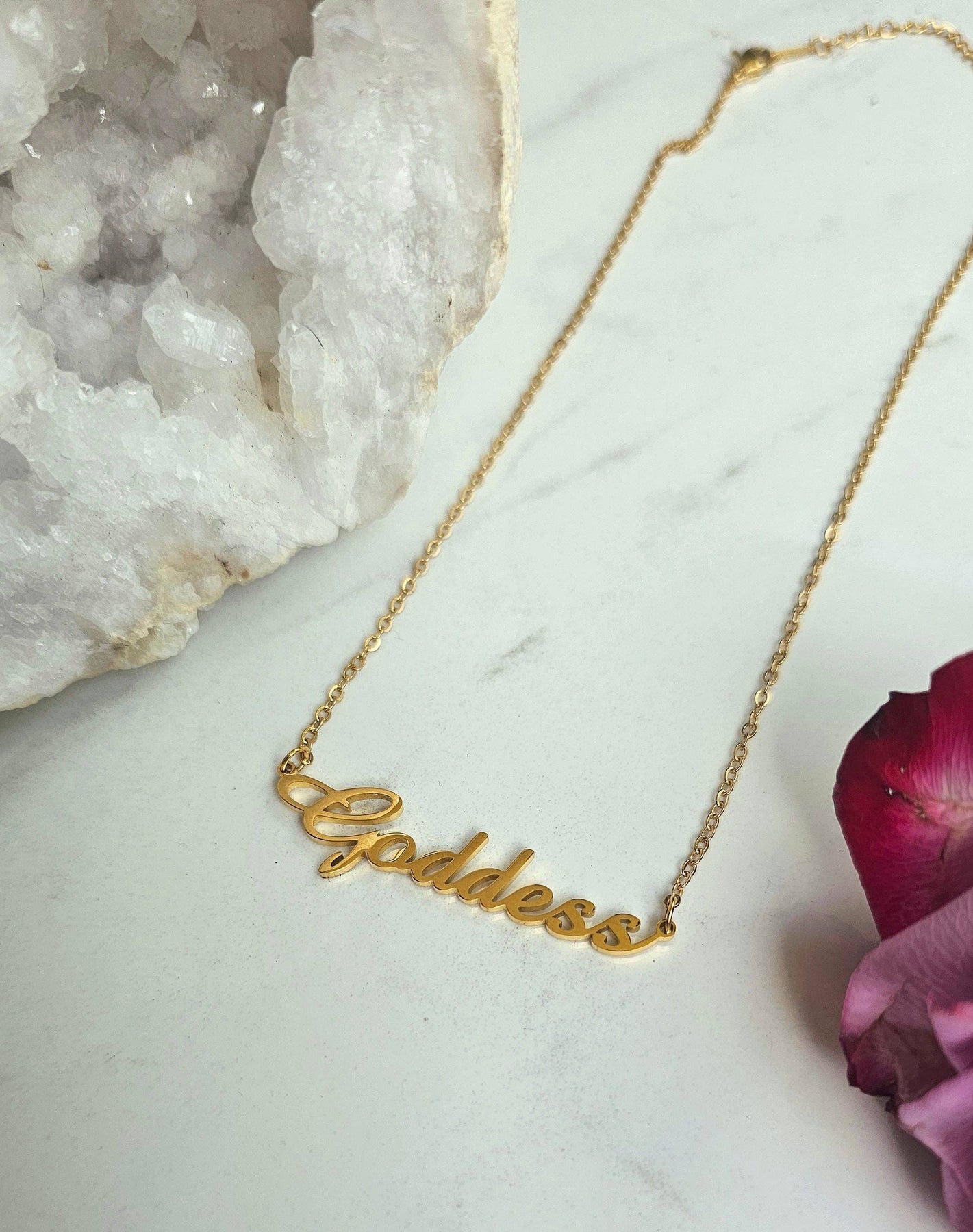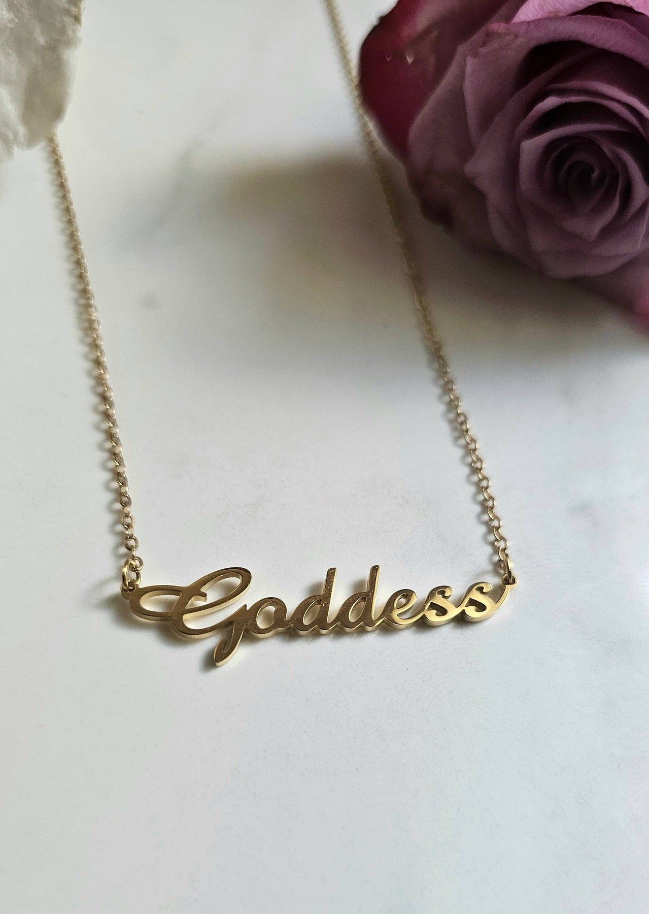 Upgrade your jewelry game with our 18k Gold Plated Goddess Necklace - featuring a custom pendant that's as high quality as it is fly!