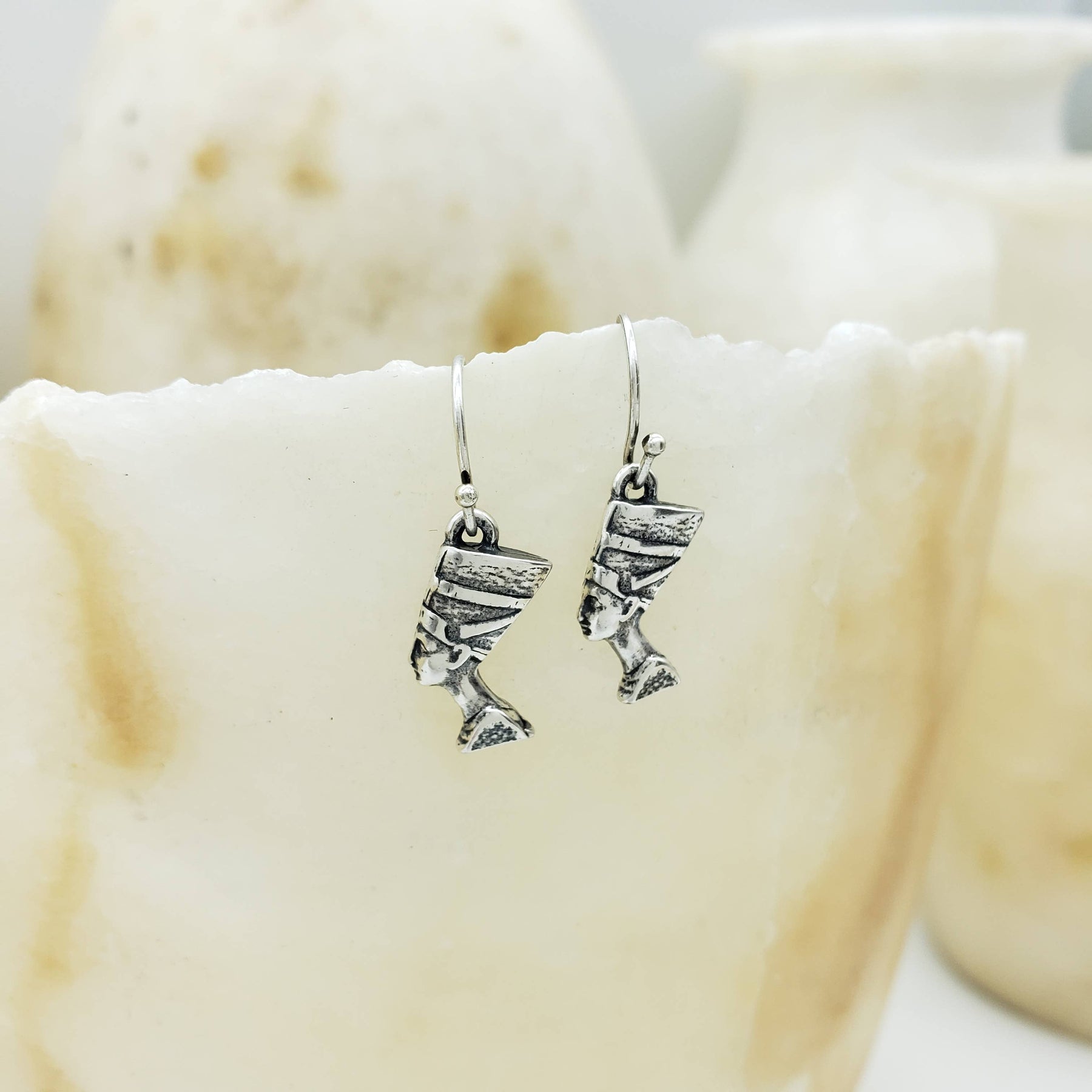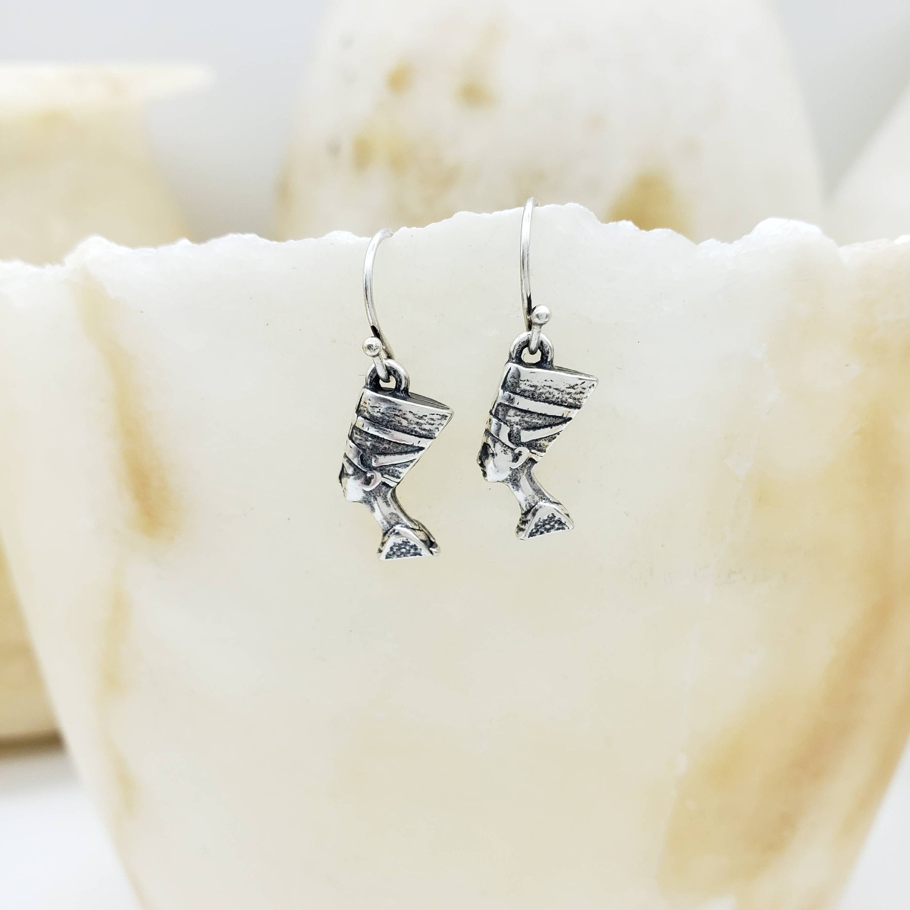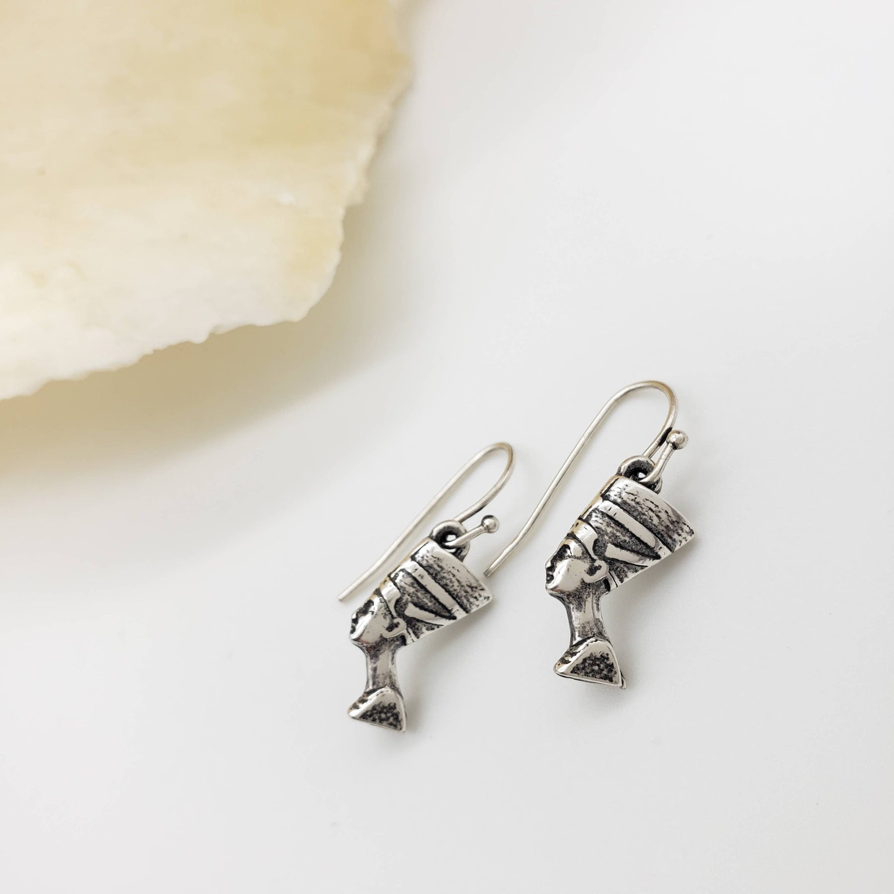 Egyptian Nefertiti Earrings - Antiqued Silver