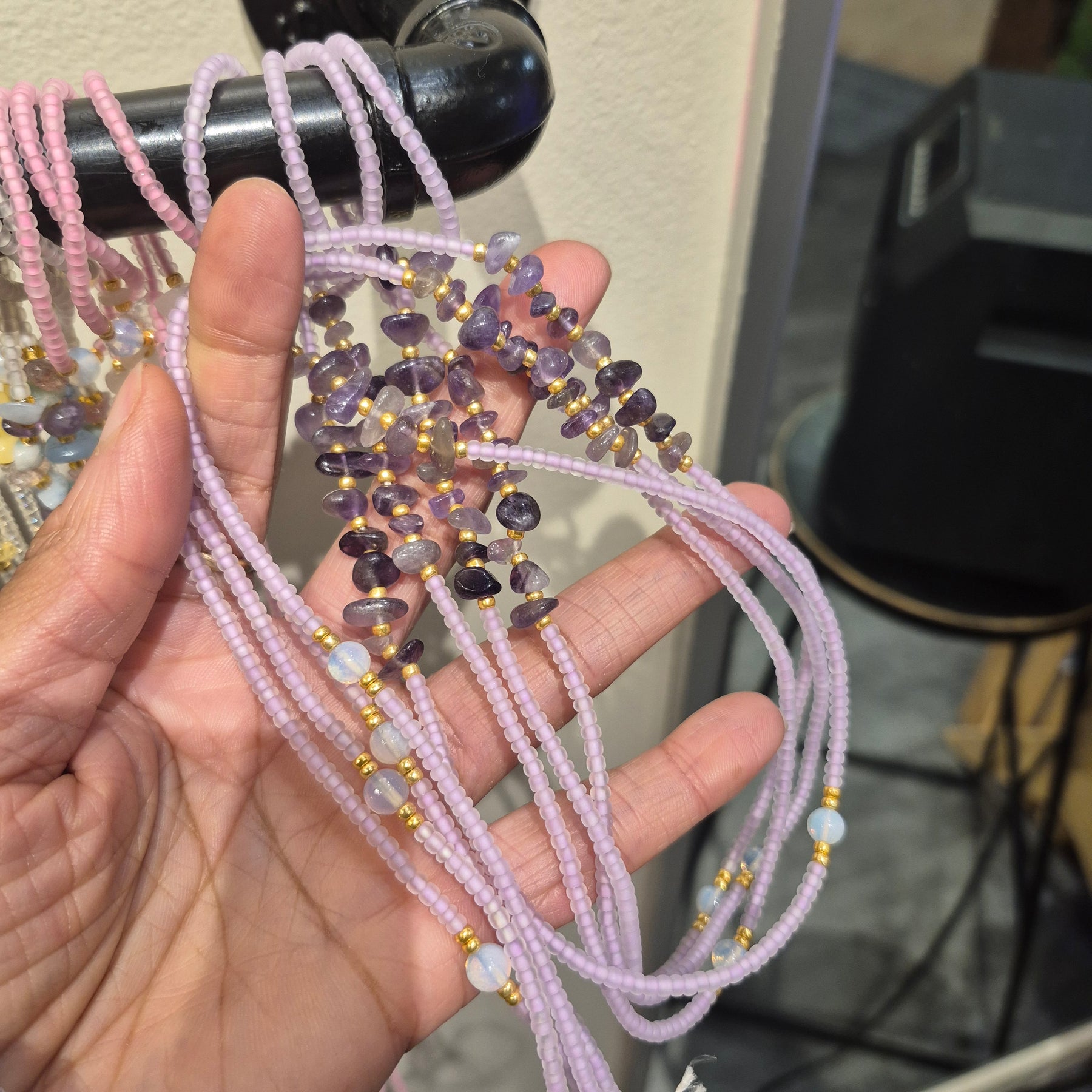 Made with real stone chips, this beautiful waist bead carries the properties of Purple Amethyst.